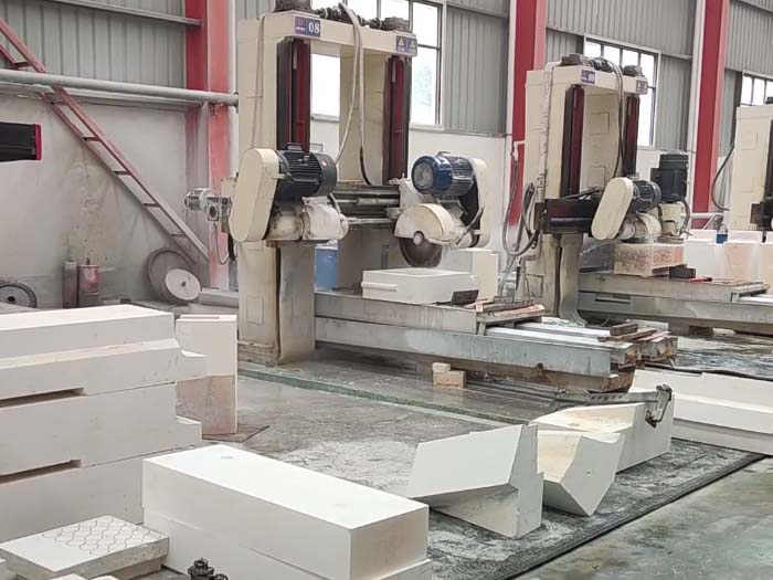 生產燒結剛玉磚所用原料是將高純工業氧化鋁經過煅燒后細磨(有時也加入少量MgO添加劑,以改善其晶體結構),壓制成坯體,在1850℃以上煅燒。高溫煅燒使坯體結構中氣孔減少,晶粒增大約25~40倍。良好的燒結剛玉晶體呈致密的板狀結構。